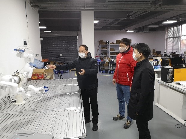 而智能消毒与巡检机器人能够自动无死角喷洒次氯酸消毒液进行消毒,同时还可以自主巡逻,具备移动式红外测温筛查、循环播报提醒等功能,实现远程可视化指挥。此外,由实验室联合湖南爱米家智能科技有限公司,研制的用于隔离环境的药品运输和双臂协作配药检测机器人系统,相关技术和设备可协助医护人员完成病毒检测、药品运输等工作。