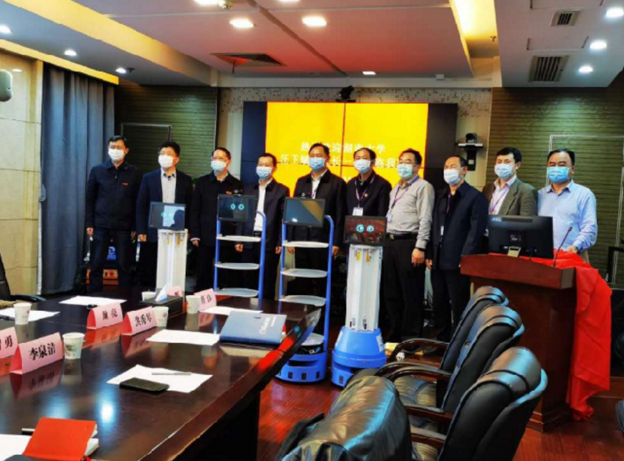 24日,湖南大学向湖南省人民医院捐赠2台自主研发,能远程操控消毒、智能导航的防疫机器人。